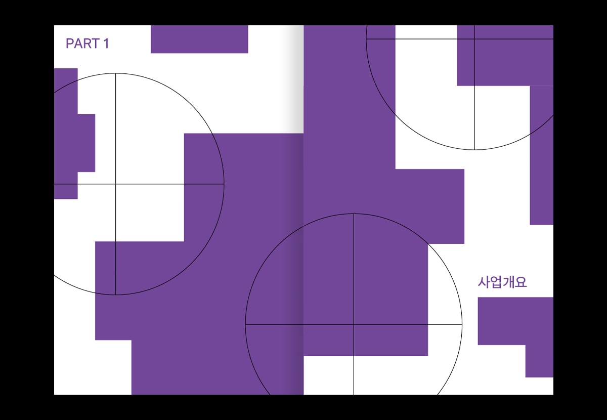 시작공간 일부에서 지난 1년간 진행한 청년문화활성화사업의 성과를 엮은 자료집입니다. 정해진 틀을 거부하고 자신만의 문법으로 삶을 재정의하는 오늘날 청년들의 특징을 가변적인 기하학적 형태로 풀어냈습니다.